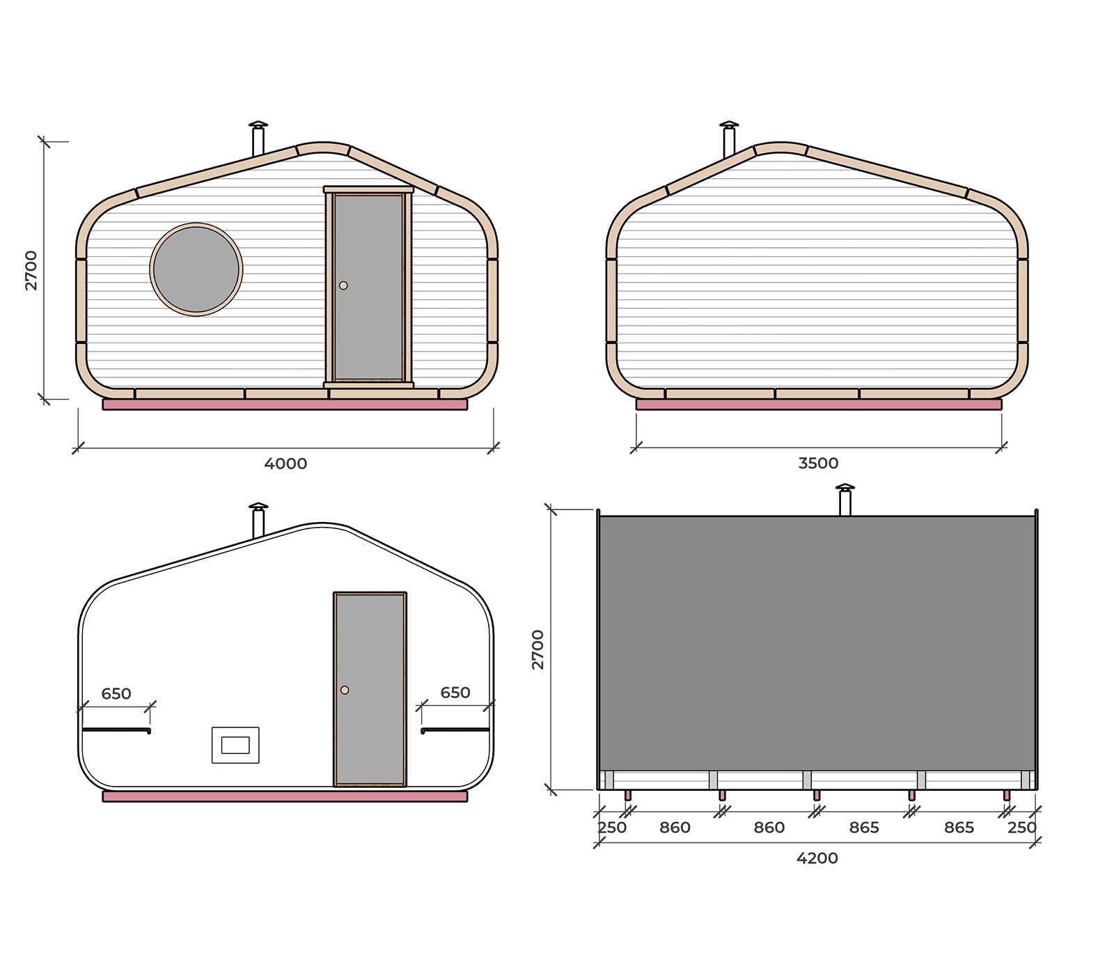 • Es gibt ein rundes Fenster im Dampfbad (zusätzliche Fenster können auf besonderen Wunsch hinzugefügt werden)