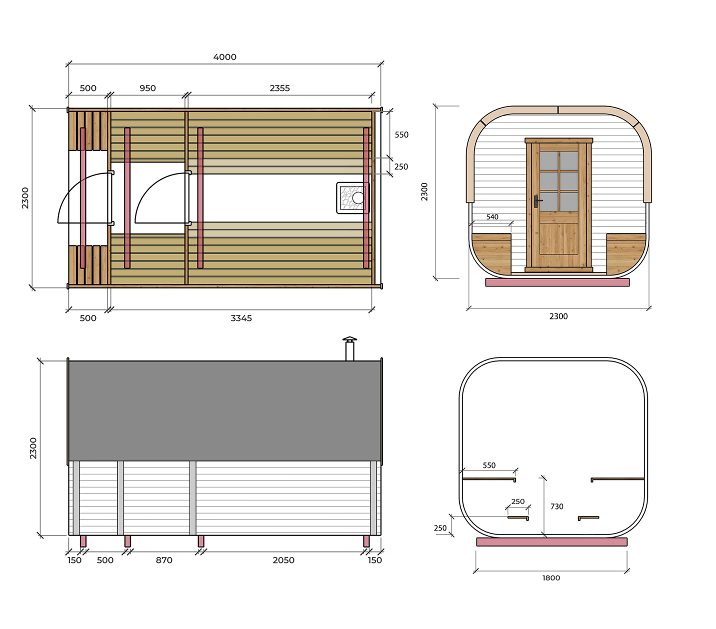 - Seinät on tehty 40mm kuusesta